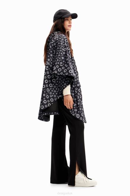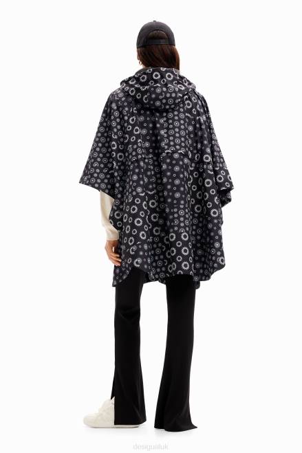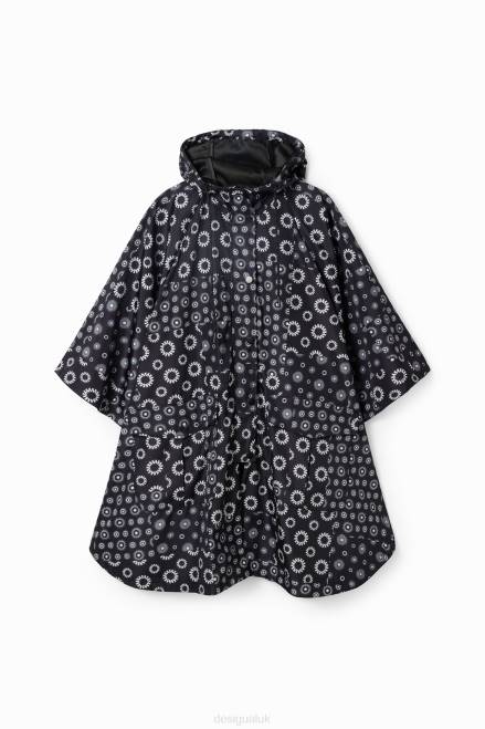 A lightweight oversize poncho-style raincoat with a hood, maxi pockets and side openings. Featuring a New Heritage geometric print.