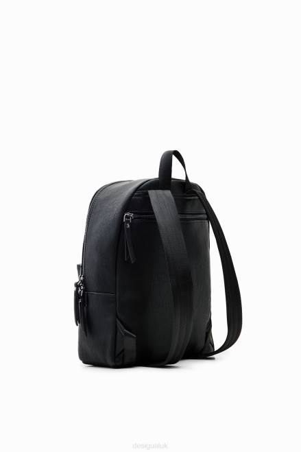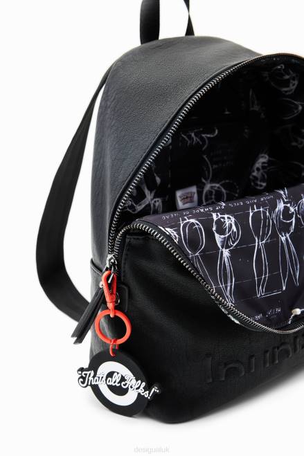 A small backpack in leather-effect fabric with a Bugs Bunny illustration and multipls straps and pockets.