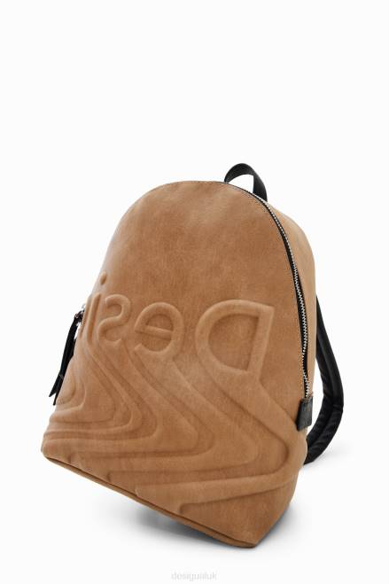 A small backpack in leather-effect fabric with distorted logo embossing. Featuring several straps and pockets.