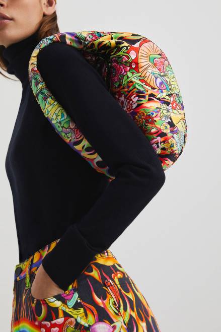 This half-moon sling handbag with an arty flame print is a Maria Escote design made from a supple and malleable material that's right on-trend.