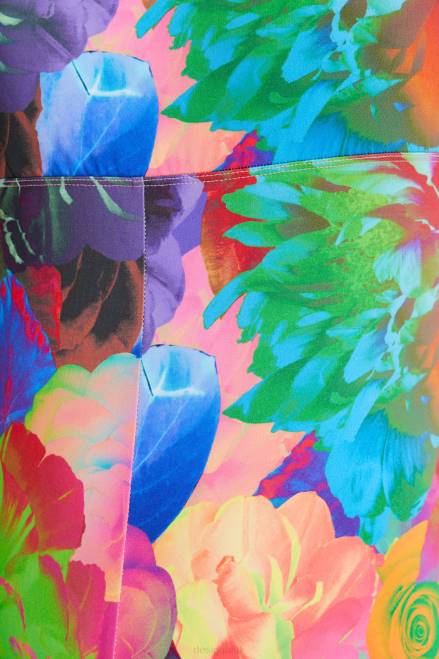 A short, sporty unitard with front and back neckline, wide straps and central seams. In stretch fabric with a multicoloured floral print.