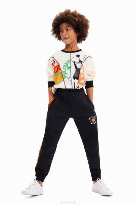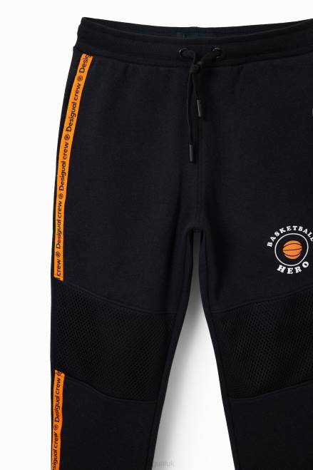 Knit jogger trousers with an elasticated waistband, mesh fabric details and contrasting sport motifs.