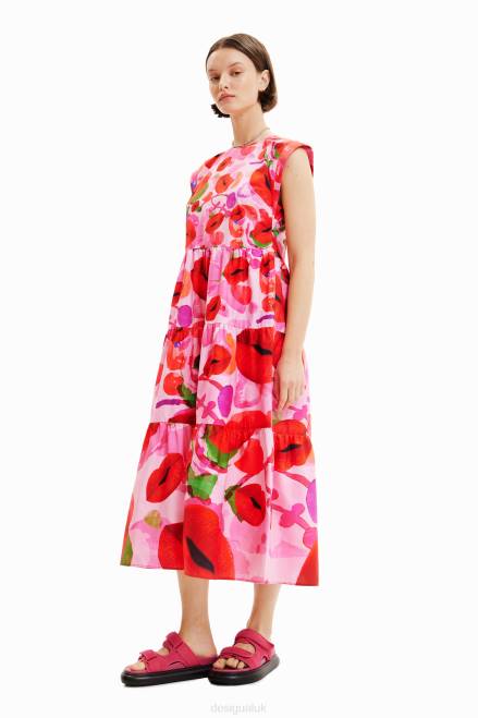 A loose, sleeveless midi dress with gathered ruffle-effect panels, in poplin with a multicolour print. Designed by M. Christian Lacroix.
