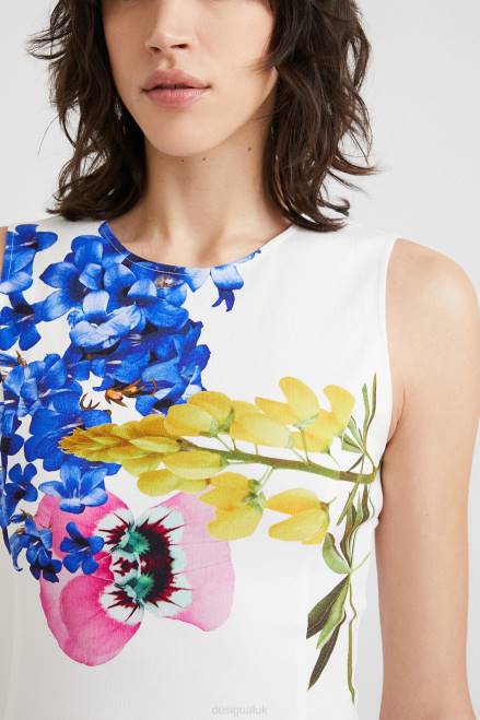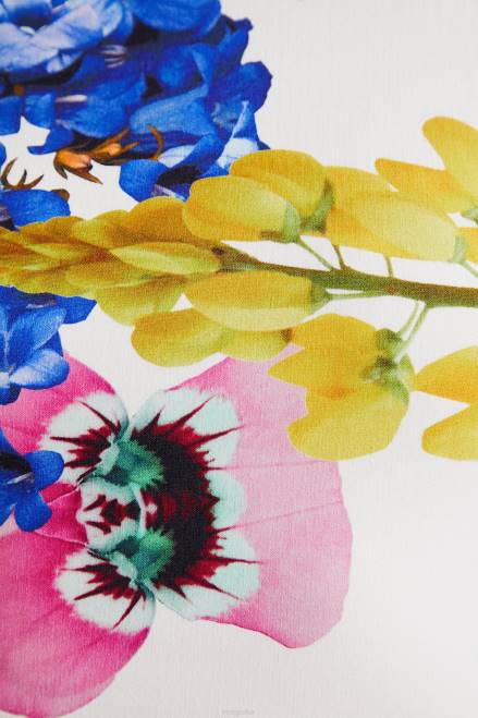 In running stitch, sleeveless, with a small opening on the front and an invisible zip closure on the back. Floral print designed by M. Christian Lacroix.