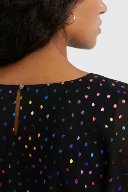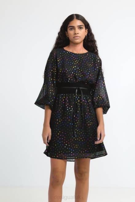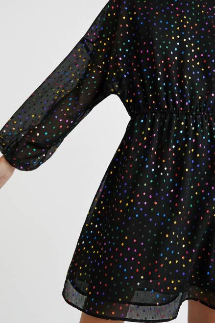 This could be the typical short tulle dress with puffed long sleeves... But its print of coloured dots in metallic ink gives it a really unique sparkling touch.