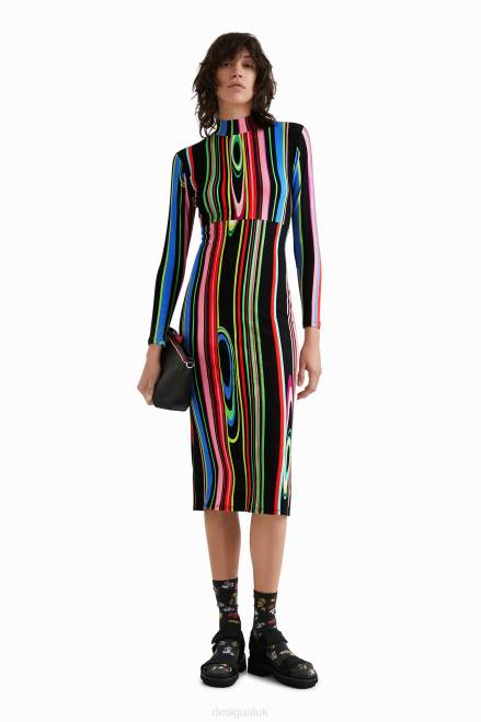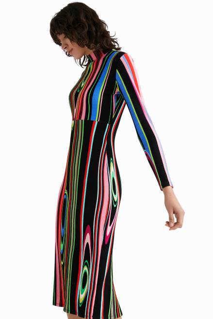 The eco-friendly ribbed fabric of this fitted midi dress streamlines your figure without compromising on comfort. It also features a colourful print designed by M. Christian Lacroix.