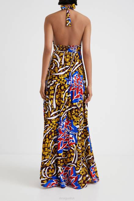 This long dress made with eco-friendly fabric and designed by Stella Jean features an all-over print and a beautiful halter neck that makes it a very sexy garment for special occasions and the warm weather.