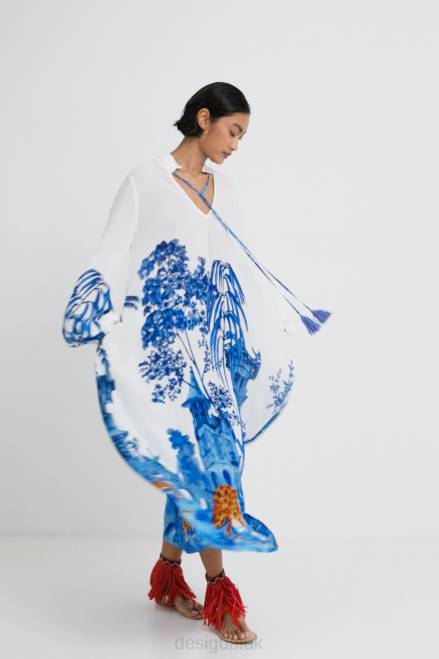 This elegant and long printed kaftan designed by Stella Jean is made from a flowing, slightly sheer, eco-friendly, very comfortable and versatile fabric. With a simple change of accessories, it's perfect for both day and night.