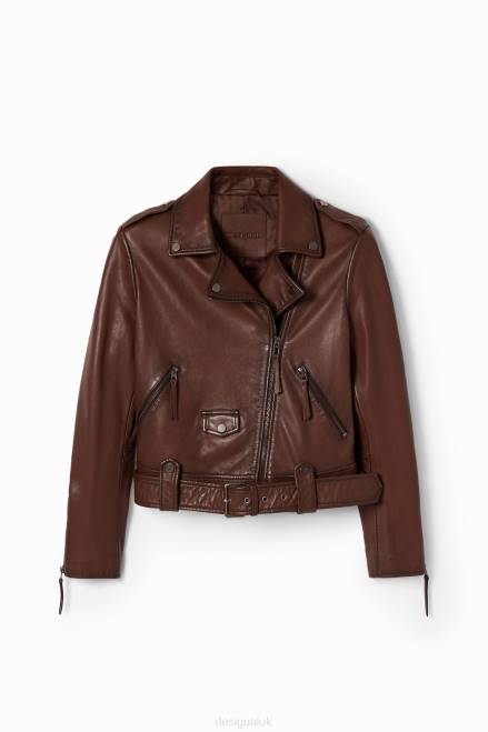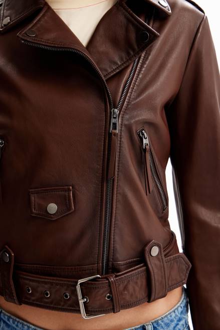 A biker-style leather-effect jacket with pockets, maxi belt loops and a removable belt.