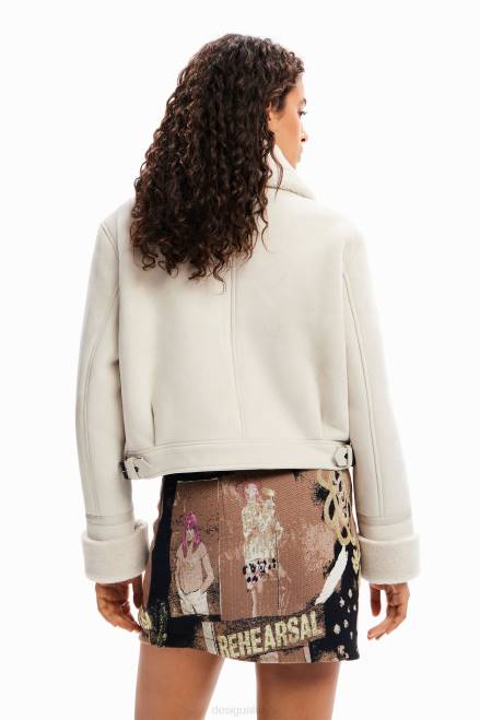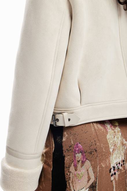 A short aviator-style jacket in double-sided fabric with a suede-effect exterior and fleece on the inside.