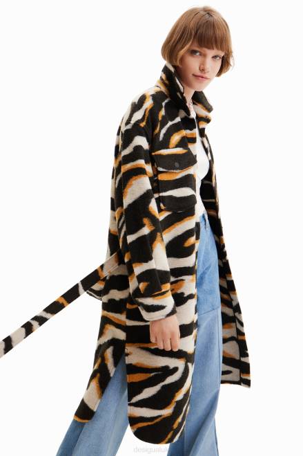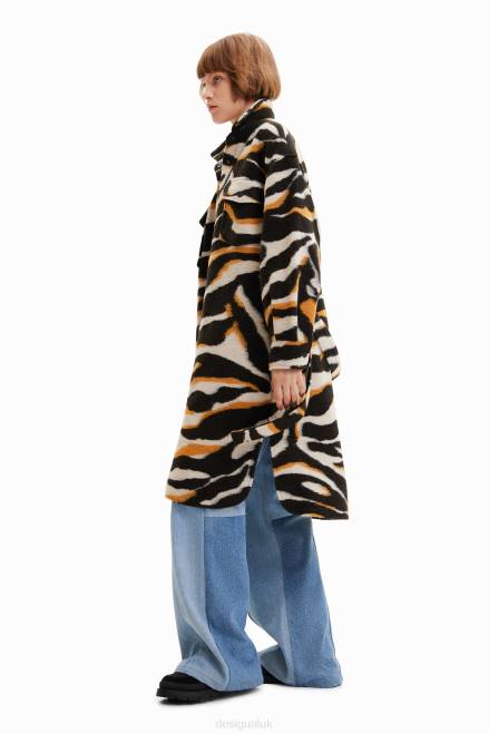 An oversize, long, overshirt-style coat in wool-effect knit fabric with a zebra pattern.