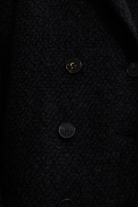 A straight double-breasted coat in very soft wool, with lapels and button fastening.