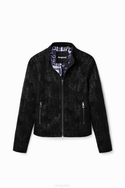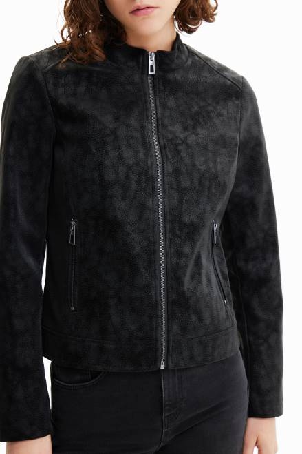 A biker-style jacket with long sleeves, a mandarin collar and a very soft suede-effect texture. Featuring zip pockets.