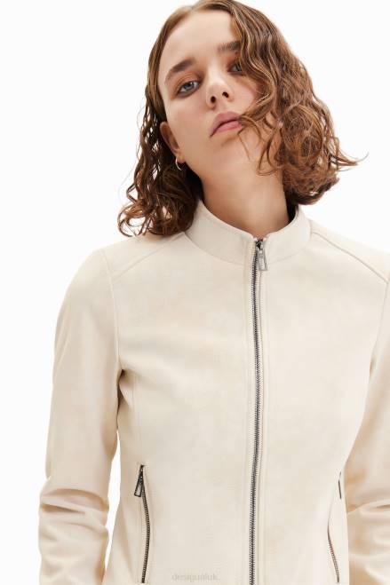 Suede-effect biker jacket Desigual Women 2ZPR793 Clothing