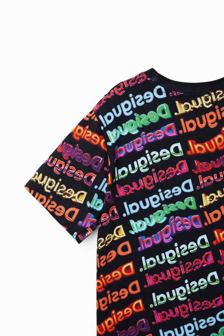A short-sleeve T-shirt with a multicoloured 3D-effect logo print.