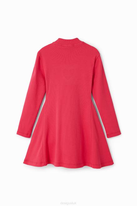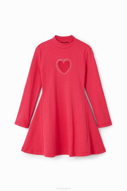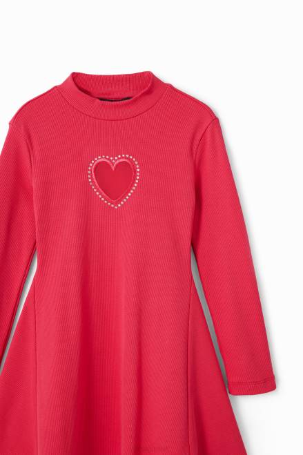 A long-sleeve ribbed dress with a heart-shaped front cut-out and rhinestone detail.