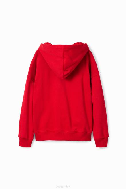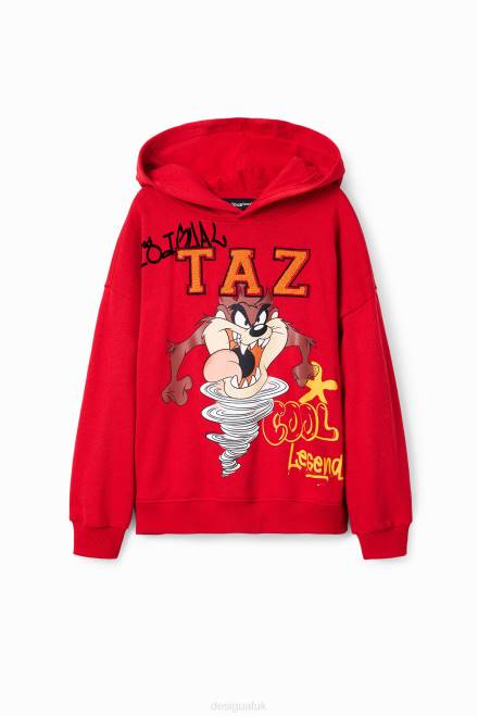 A loose hoodie with a front Looney Tunes print with graffiti-style messages and embroidered patches.