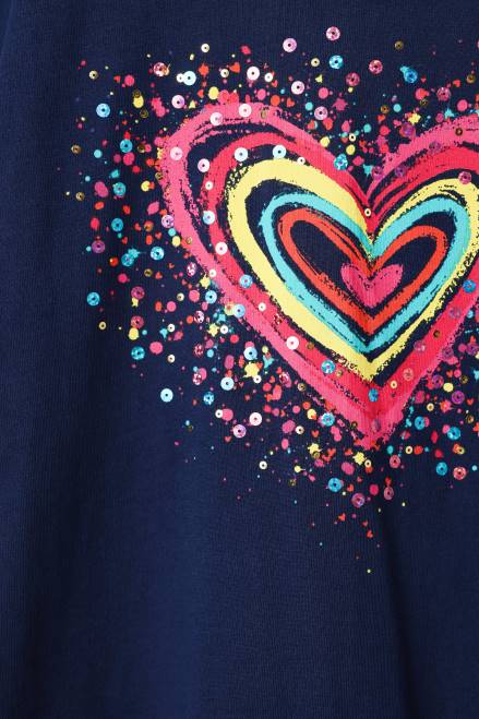 A short-sleeve T-shirt with a sequinned heart print on the front.