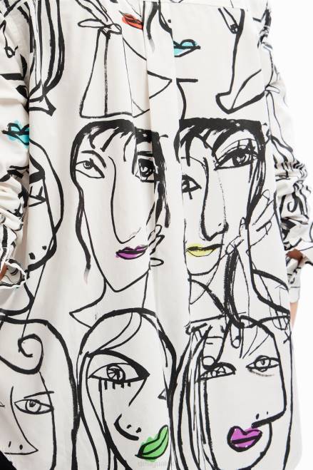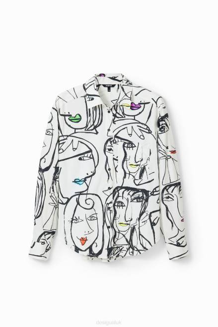 A long-sleeve shirt with a front pocket and poplin fabric with a face print by designer Javier Mariscal.