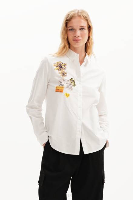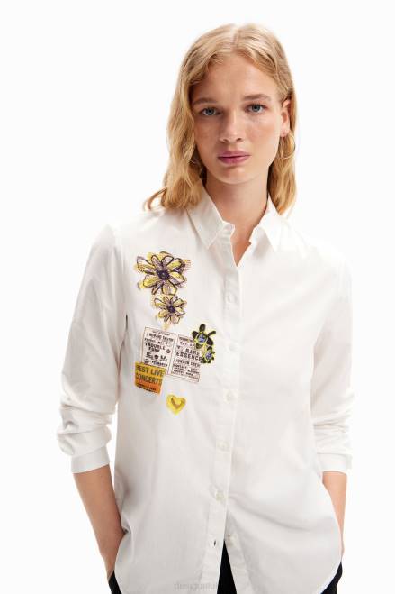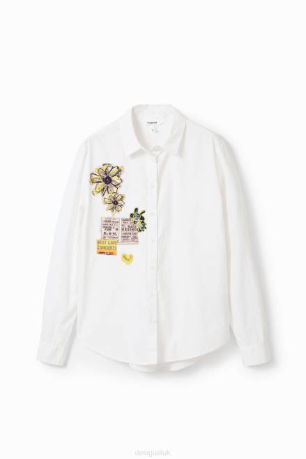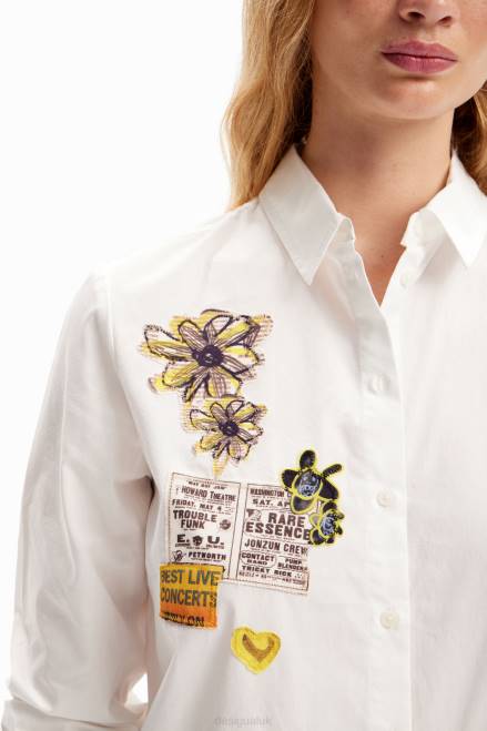 A long-sleeve shirt in plain poplin with patches on the front.