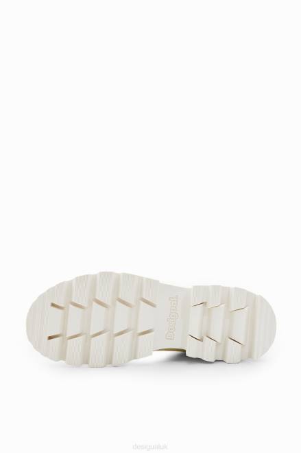 High leather-effect boots with tone-on-tone geometric embroidery, thick serrated soles, laces and a zip.
