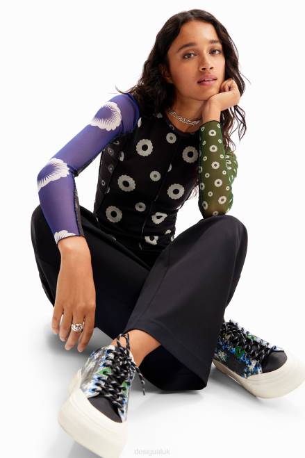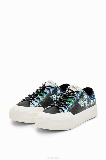 Low-top sneakers with a platform sole, rubber toe cap and leather-effect fabric with flowers and studs on the back.