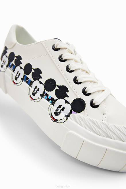 Low-top sneakers with a platform sole, rubber toe cap, leather-effect fabric and a print of Disney's Mickey Mouse on one side.