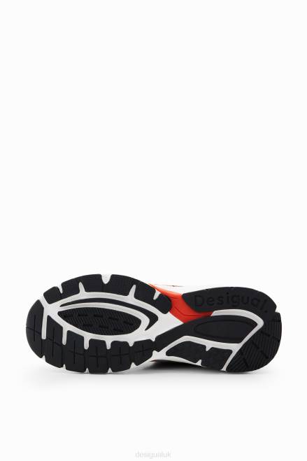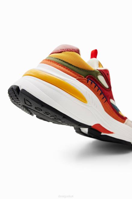 Running-style sneakers with an anatomical shape, a patchwork of different fabrics, split leather and contrasting details.