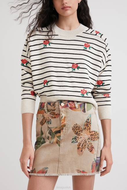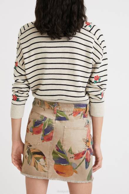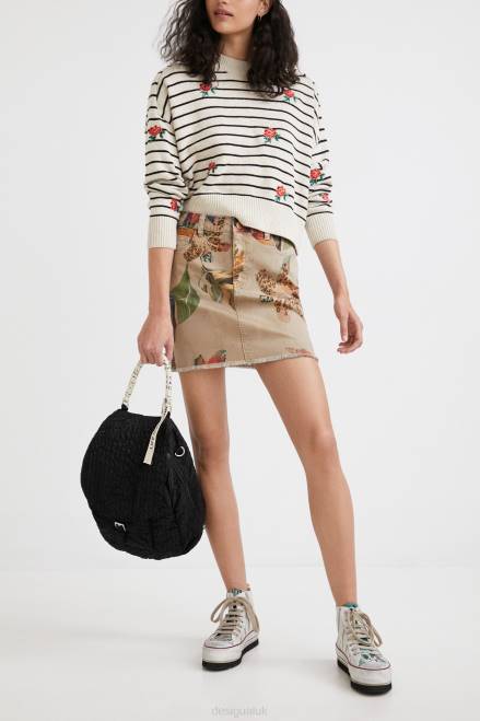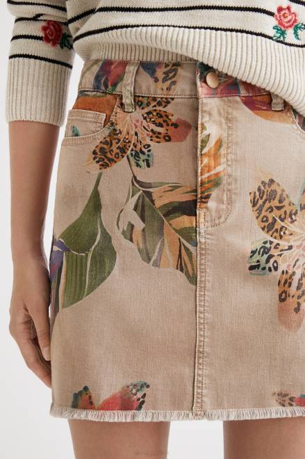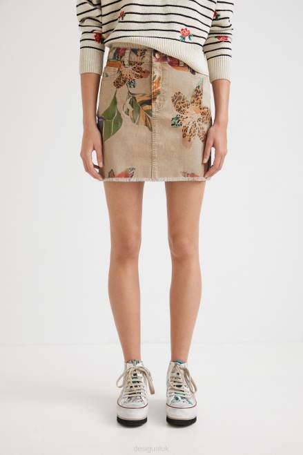 Sand-coloured floral camouflage with touches of animal print on this comfortable and flattering sustainable cotton and modal miniskirt. With a raw-cut finish and a slightly frayed hem.