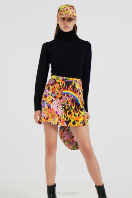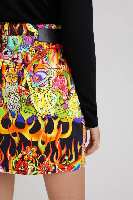 Fire, rainbows, flowers with eyes, fish, planets, horses... Welcome to Maria Escote's surreal and colourful universe, which has now been printed on a comfortable high-waisted short skirt.