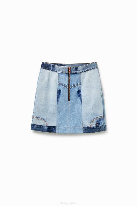 A skirt that was born from trousers. This is a mini-skirt designed from scraps of old jeans and handcrafted. Short, with zippers, without a doubt, it's a garment with 100% Desigual soul.