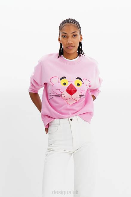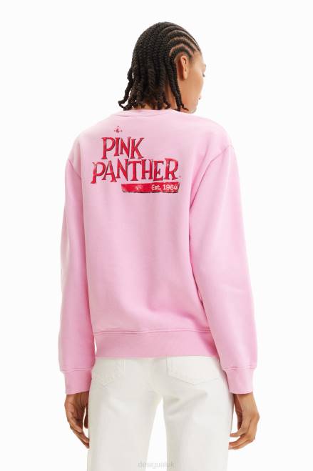 A long-sleeve sweatshirt with a washed effect and distressed Pink Panther illustrations with a rubberised texture.