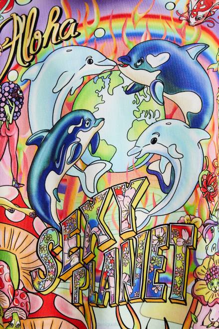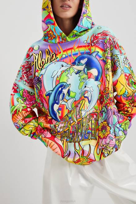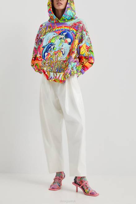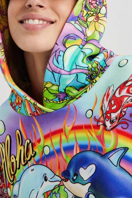 Maria Escote hasn't just designed this comfortable oversized hooded sweatshirt, she's also created a colourful and arty print with surreal motifs... Come to her Sexy Planet!
