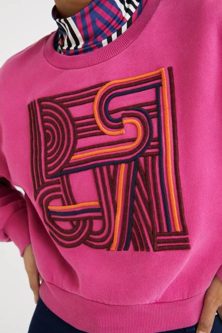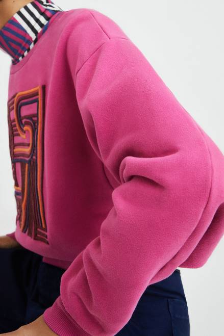 This loose-fit sustainable cotton plush jumper surprises with its warm and fluffy interior, while the embossed embroidered lettering on the chest really pops out.
