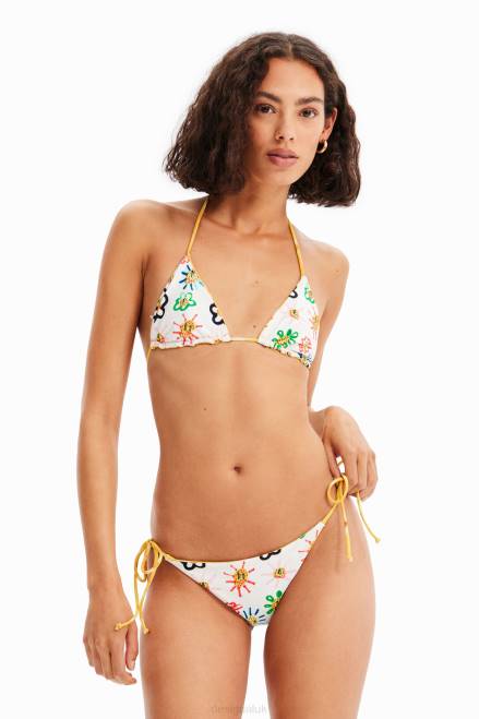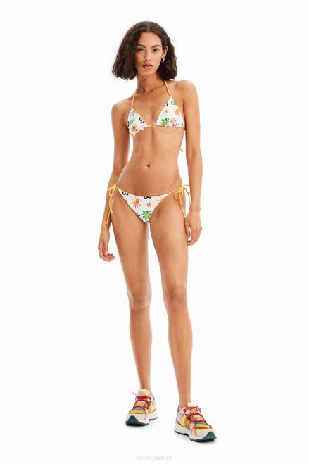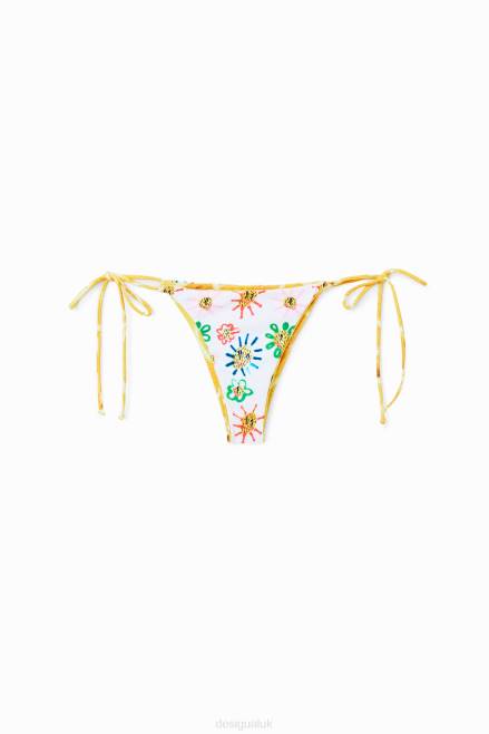 Reversible Brazilian bikini bottoms with side ties. Featuring two prints: lemons and arty suns.