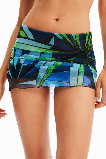 A tulle mini skirt with a side slit and a ring with gathering. Featuring a tropical print.