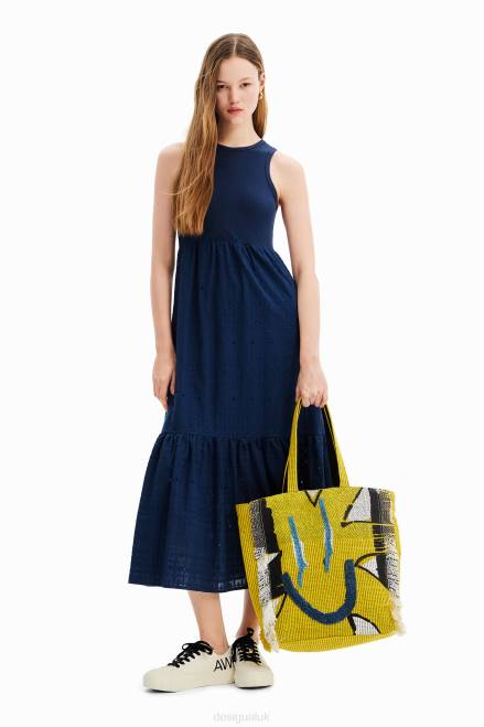 A large tote bag in rustic-style jacquard fabric with a big illustration.