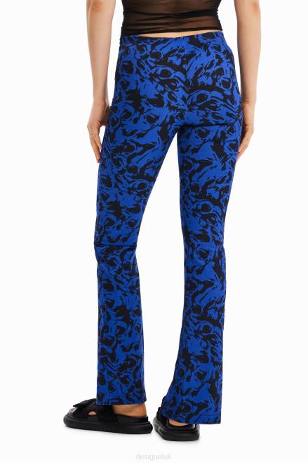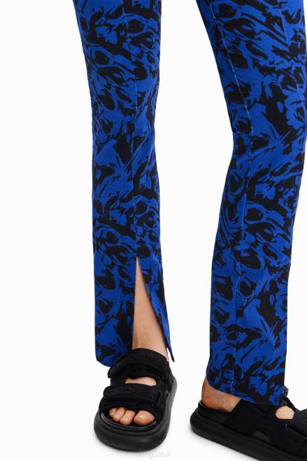 Long, fitted, slightly flared trousers with slits on the hem. Featuring an abstract print.