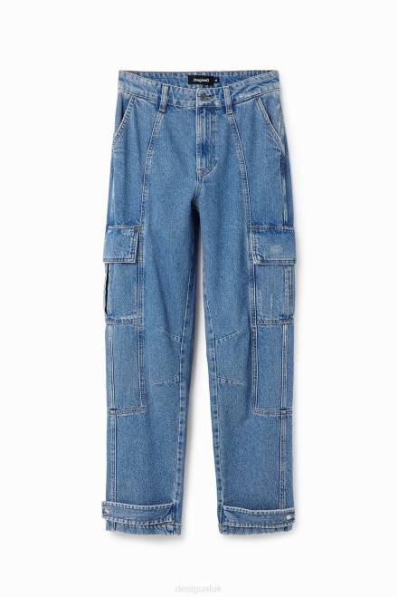 Mid-rise, cargo-style jeans with straight legs and maxi pockets on the sides. In a washed-effect denim fabric with embroidered details.