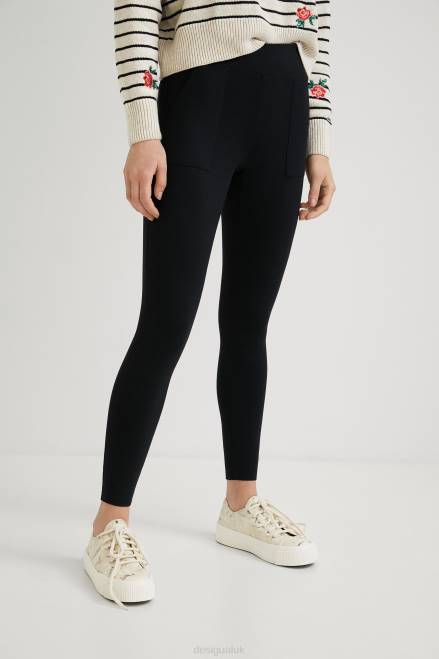 Cargo pockets on black leggings with a unique design. The thicker fabric lets them escape the gym and bring comfort to your everyday looks.