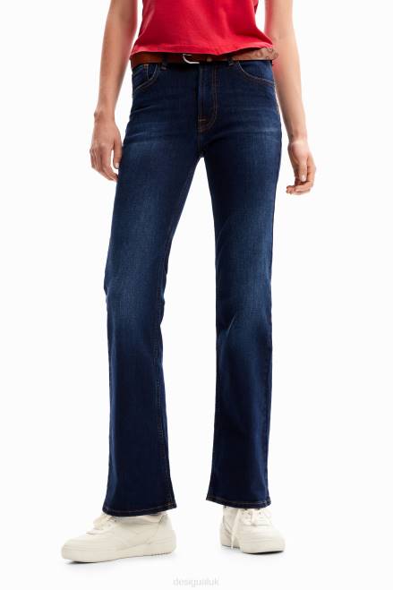 Mid-rise fitted jeans that subtly flare from the knee in a very comfortable fabric with a hint of stretch.