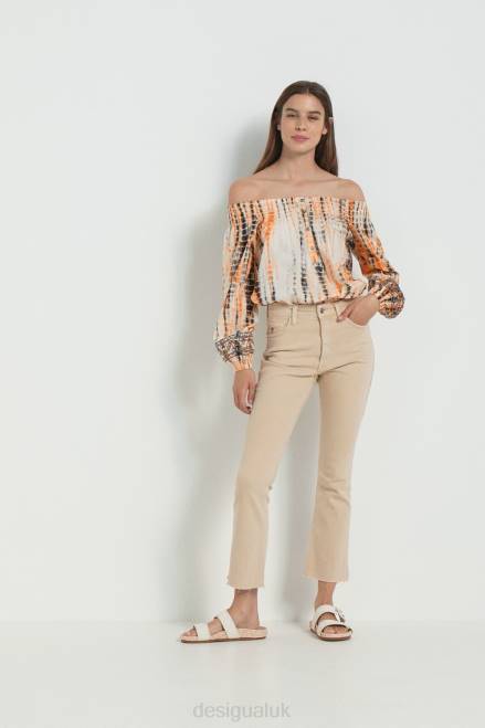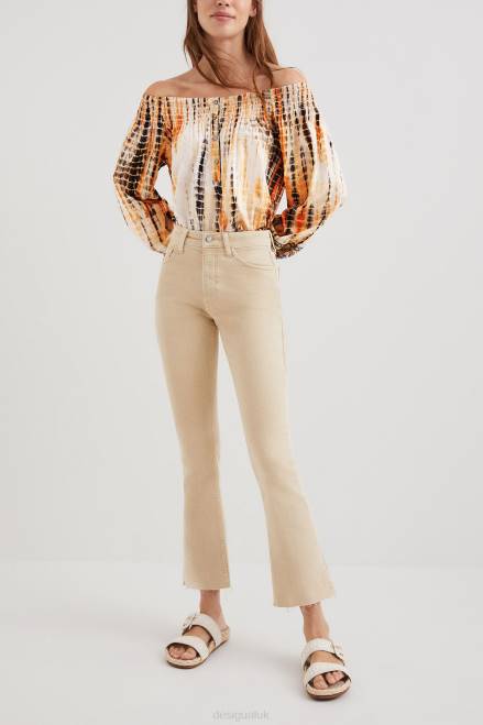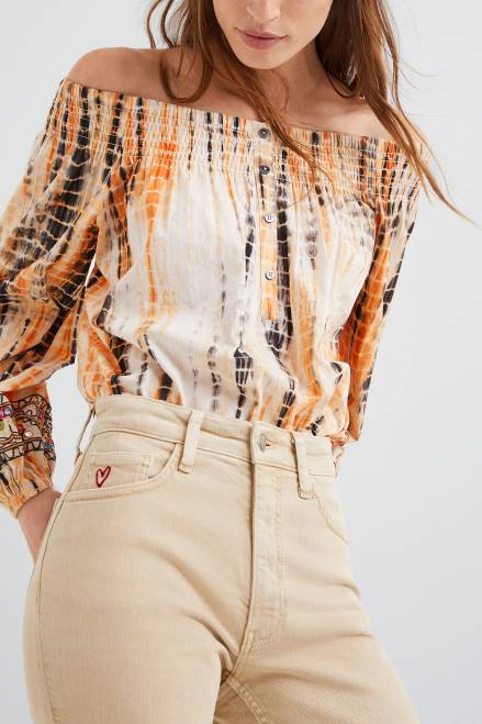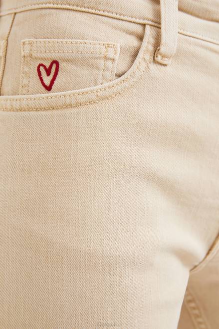 High-waisted, tight, cropped and with legs that end in a slight flare. Heart embroidery on the hip with raw-cut hems. Made from sustainable cotton.