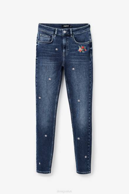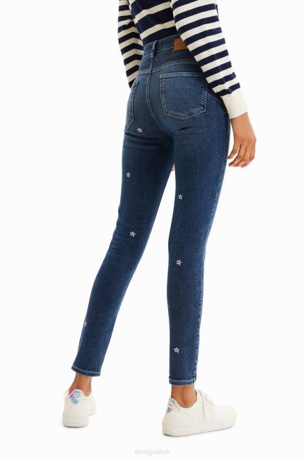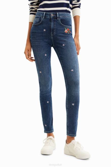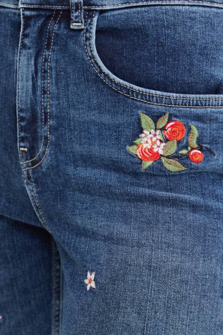 Mid-rise fitted jeans in a very comfortable stretch fabric, with a push-up effect on the derriere. Featuring embroidered flower details.
