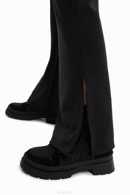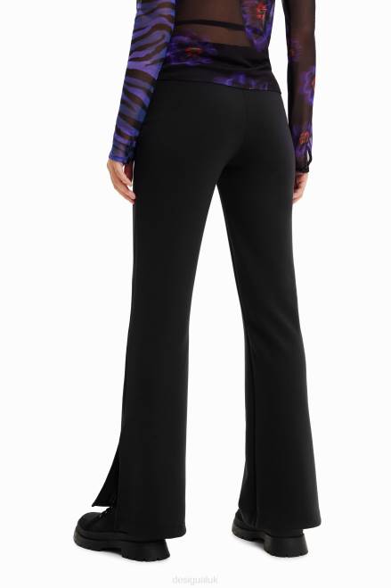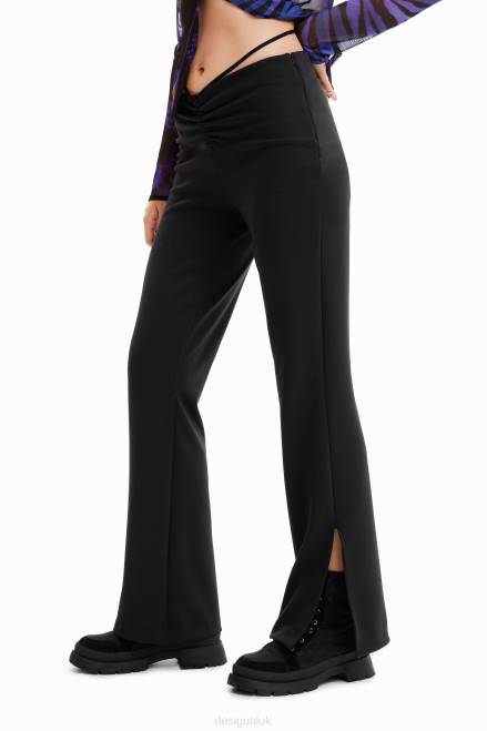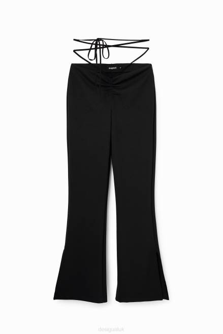 Flared, mid-rise, long trousers in knit, with adjustable gathering and ties on the front.