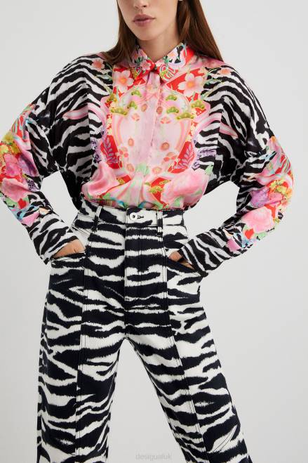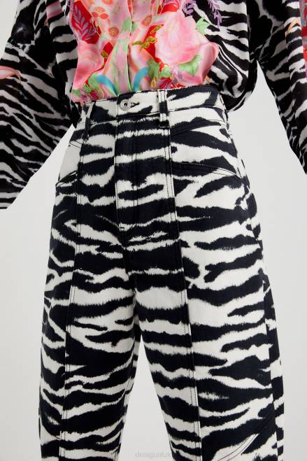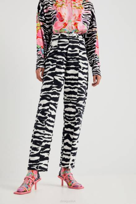 High waist and straight legs; this is one of the most flattering shapes of the season... And these are the trousers designed by Maria Escote, featuring a zebra tie-dye print.