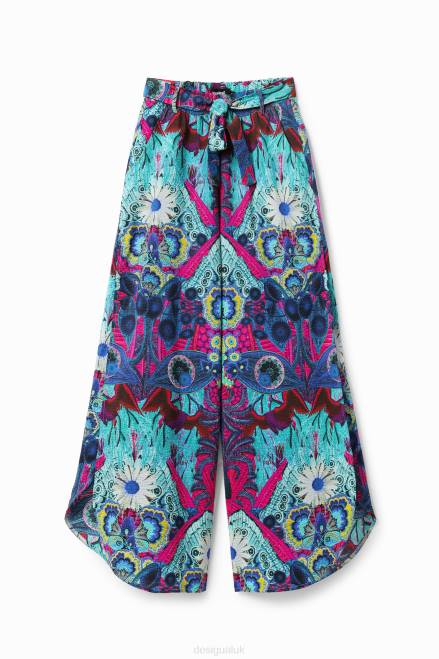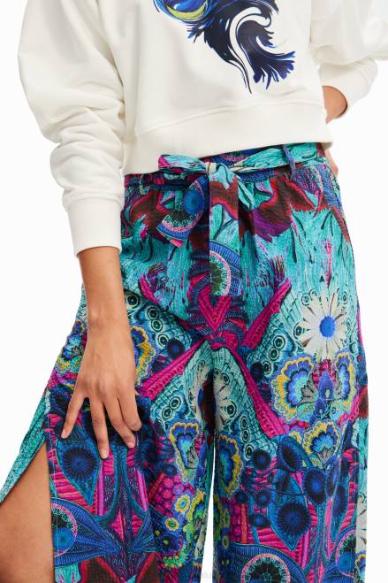 Wide trousers with a tie waist and wide side slits. Designed by M. Christian Lacroix.