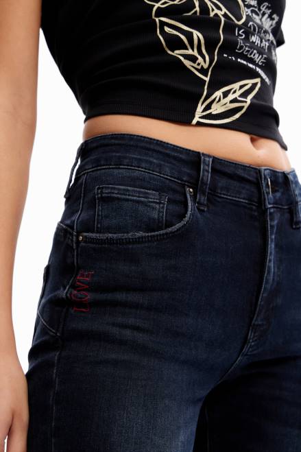 Mid-rise fitted jeans in a very comfortable stretch fabric with a push-up effect on the derriere.