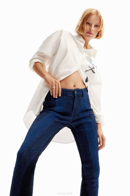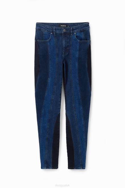 Mid-rise fitted jeans in very comfortable stretch fabric, with a push-up effect on the derriere and pieces in different shades of denim.