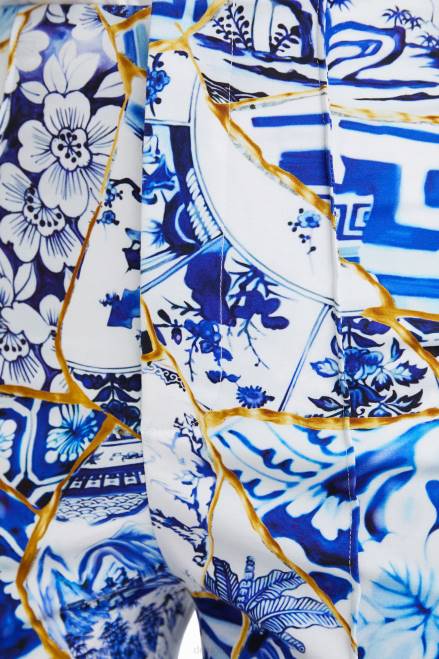 Inspired by the Japanese practice of Kintsugi, the print on these trousers designed by Stella Jean recreates ceramic pieces bonded by lines of gold. Fitted, high-waisted and made from cotton.