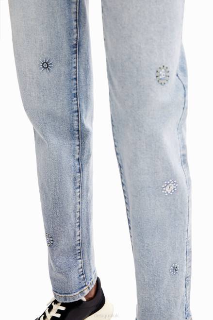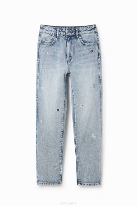 Straight-cut, mid-rise jeans with subtly fitted legs in denim with a stretch knit featuring appliques on the front.